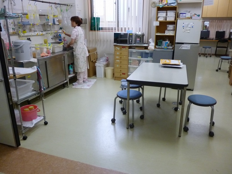 男性の方が女性の方と比べて若干多く、平均年齢80歳半ば・平均介護度は4.5です。介護度が重くお部屋のベッドで過ごされてみえ、医療依存度のご利用者様ばかりです。様々な職種との連携によってそれぞれのご利用者様に合わせた安心・安全なケアをさせていただいております。お部屋は完全個室でエアコンが完備されています。思い出の品などもご自由に持ち込んでいただき自分らしいお部屋にしていただけます。お風呂は寝たきり状態など介護度の重い方でも安心して入浴していただける機械浴が完備されています。入浴介助は介護職員2~3名によって行わせていただいているので安全・快適に入っていただけます。ご家族様やご友人様にいつでも会いに来ていただけるように24時間面会可能で滞在時間の制限もございません。